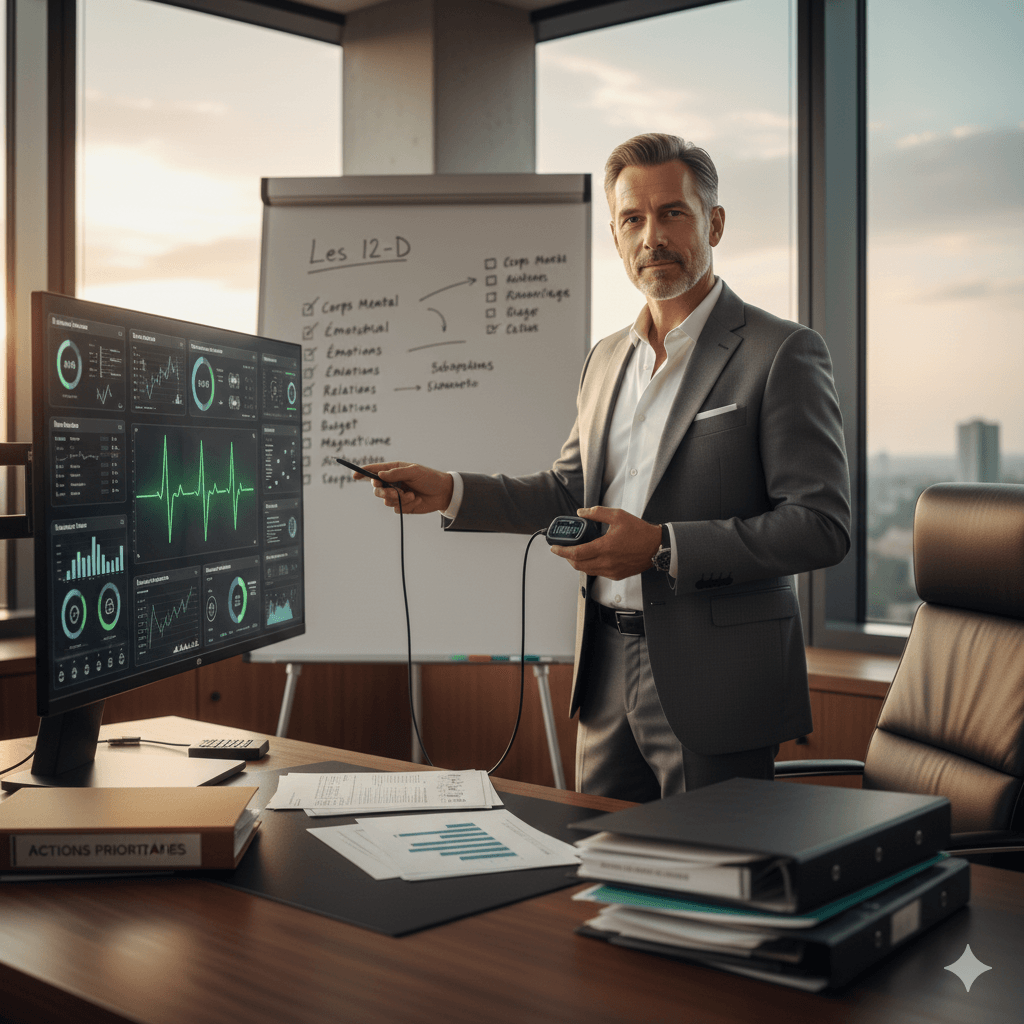 Résultats types : +1h30 sommeil, –30% stress, décisions 2x plus rapides